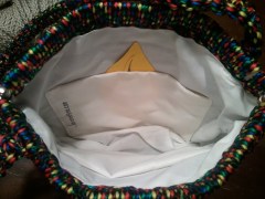 The strap cords run through the entire design giving it added strength. Notice the black in the four purses above, runs from the strap to the top sides, through the ribs to the center bottom and tied with the other cords to close it off.
