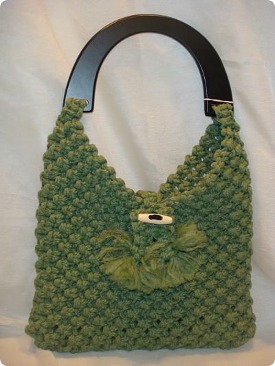 Both of these are great on-the-run bags. The purse is built through the wooden handle. Each have a slightly different closure on the flap over tab. The cactus green is 10″ x 10″ and the pottery is 11″ x 11″ in size. Remember each can be made slightly wider and longer.