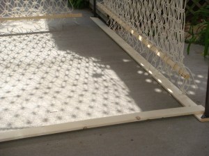 Incidentally, before we took down the walls, I had another idea to use this same pattern for a hammock; just a little shorter width and a little longer length. I’ll get back to you on this; I’m still working out the details. Tell me what you think.