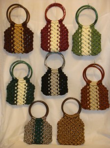 There are two great shoulder purses. These purse designs are the best. Once made, they will last a lifetime. The shoulder straps are worked through the entire purse for durability and strength. Easy to maintain; just toss into the clothes washer and air dry. With macrame cord, the colors do not fade, so it keeps its good looks always.